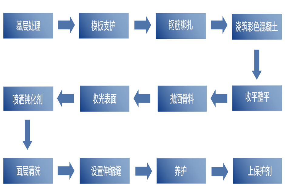 使用寿命长:使用无机染色分散剂染出的彩色混凝土加上天然彩色砾石使其具有长期的色彩寿命。